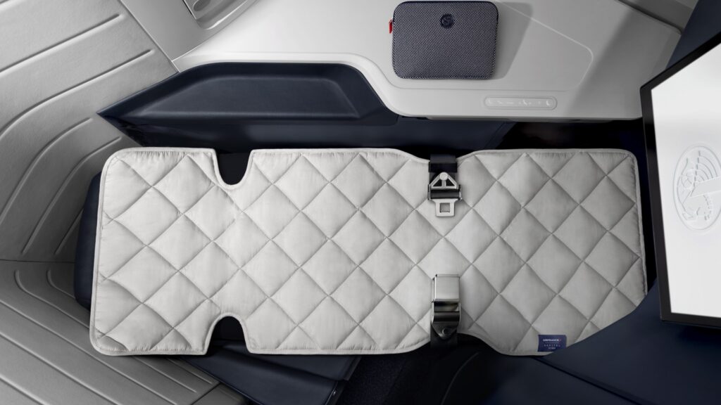 Ce sur-matelas n’est qu’un élément supplémentaire d’une cabine Business déjà iconique. Lit plat de près de deux mètres, intimité renforcée grâce à une porte coulissante sur les appareils les plus récents, lumière douce, matériaux nobles, écran 4K, casque réducteur de bruit, connectivité Bluetooth et Wi-Fi… À cela s’ajoute une gastronomie soignée, des vins rigoureusement sélectionnés et un service pensé comme un accompagnement personnalisé.
